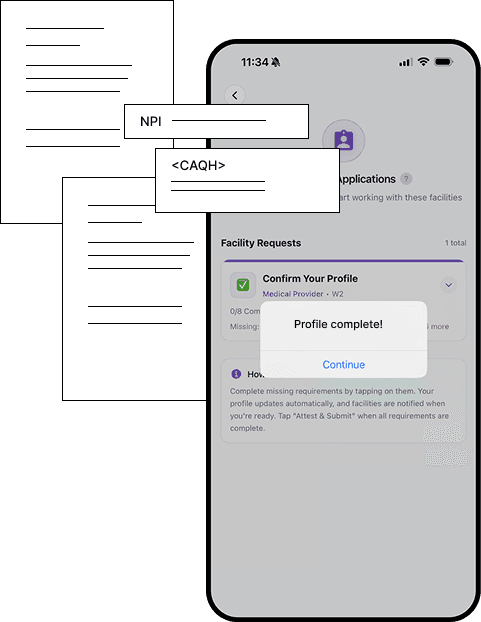 We turn documents and 3rd part info into structured data and keep the provider in the loop to confirm accuracy. This eliminates re-keying and reduces errors that stall onboarding.